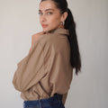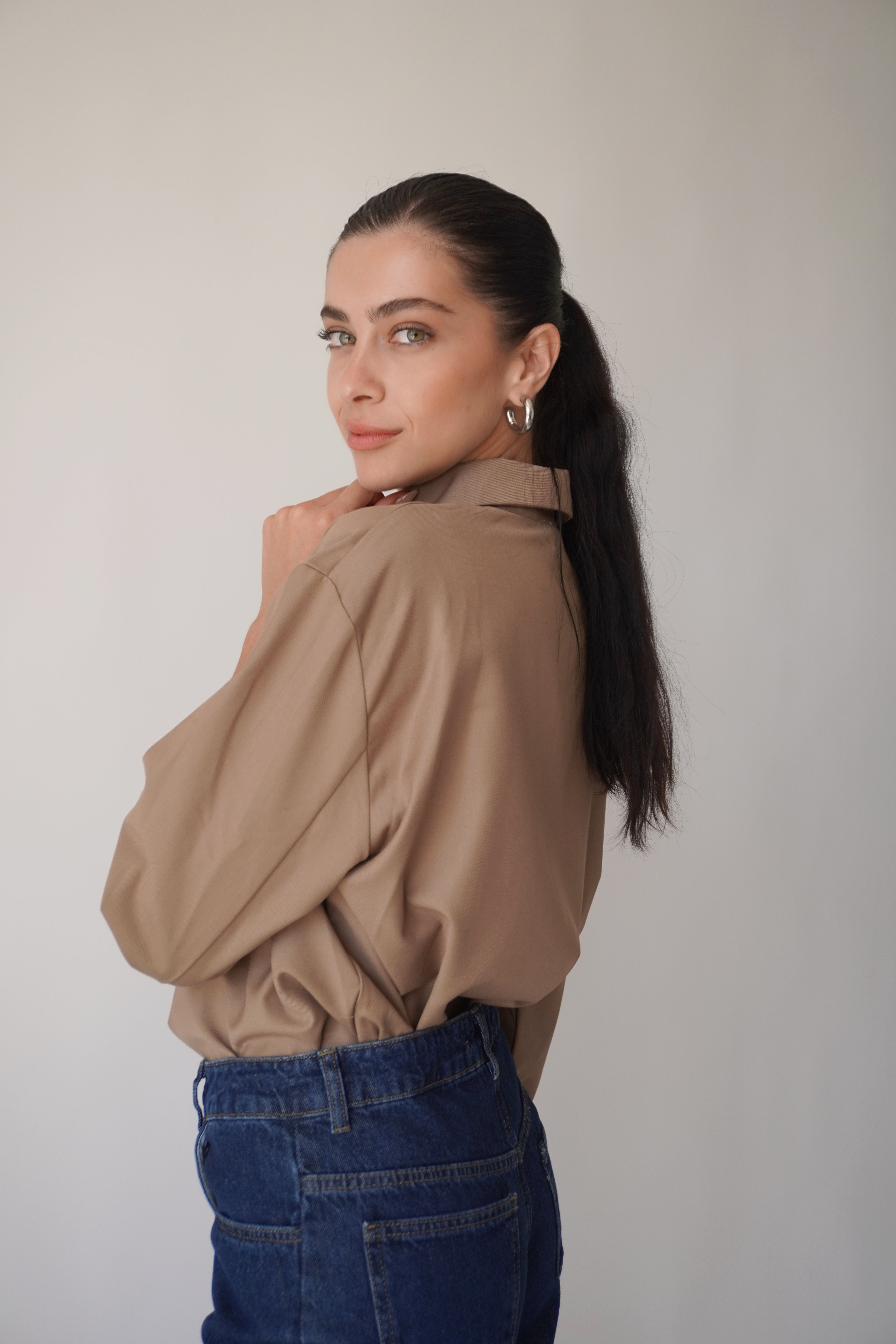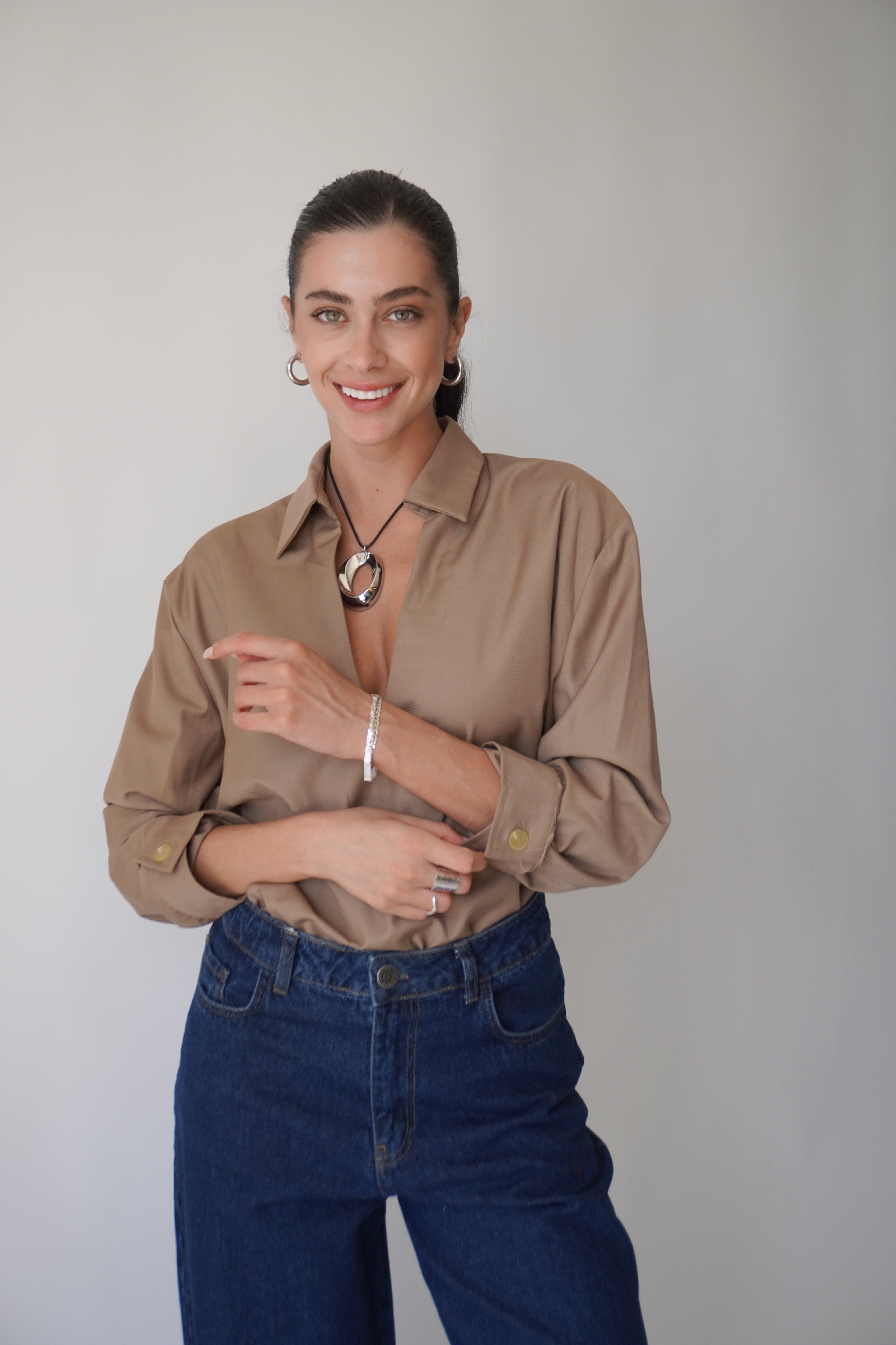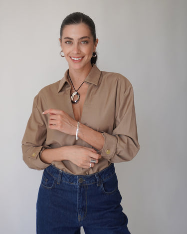 - Μακρύ μανίκι με κουμπί στο τελείωμα