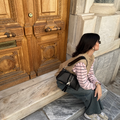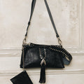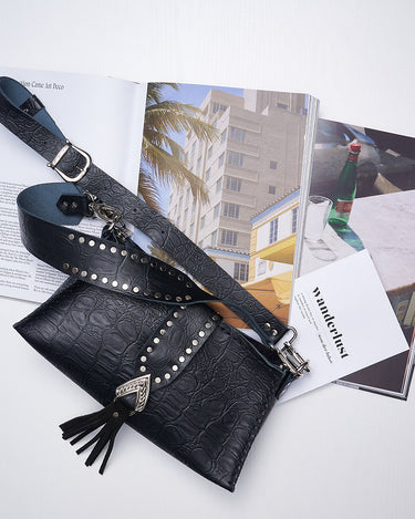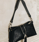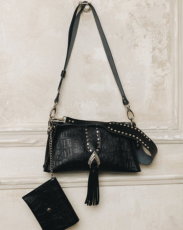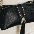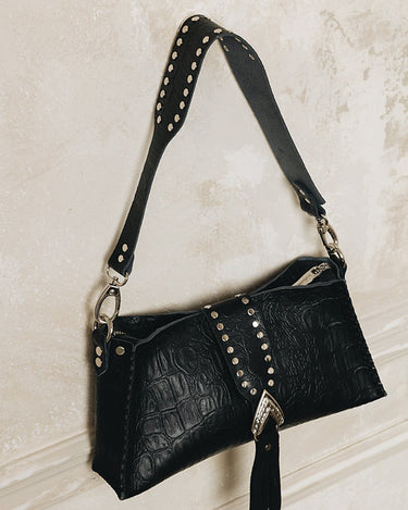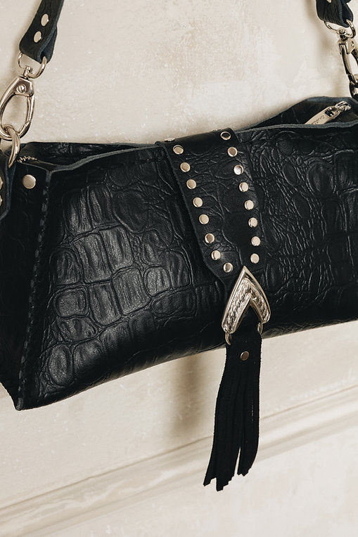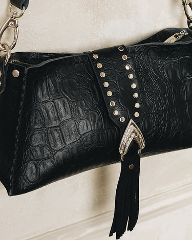• Χειροποίητη δερμάτινη τσάντα ώμου με νίκελ μεταλλικά σκαλιστά στοιχεία