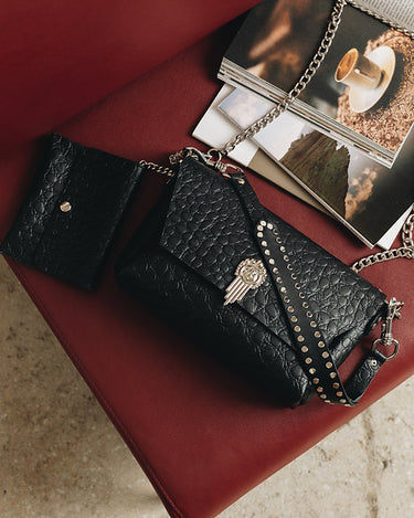• Κλείνει με μαγνητικό κούμπωμα και περιλαμβάνει αποσπώμενο δερμάτινο πορτοφολάκι