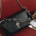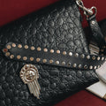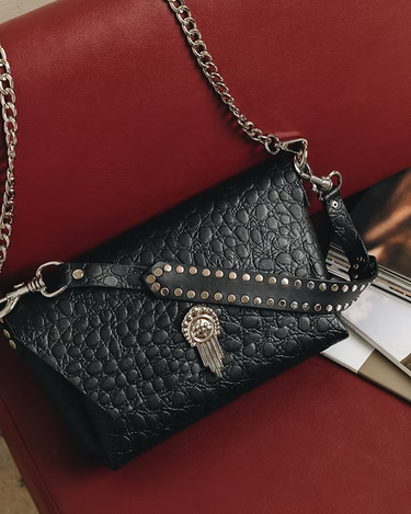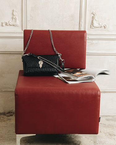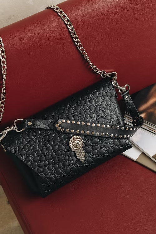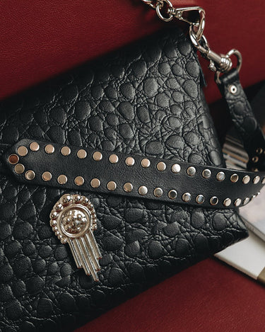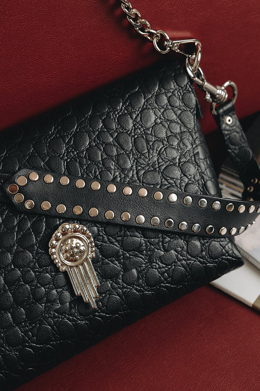 • Χειροποίητη δερμάτινη τσάντα ώμου με νίκελ μεταλλικά σκαλιστά στοιχεία