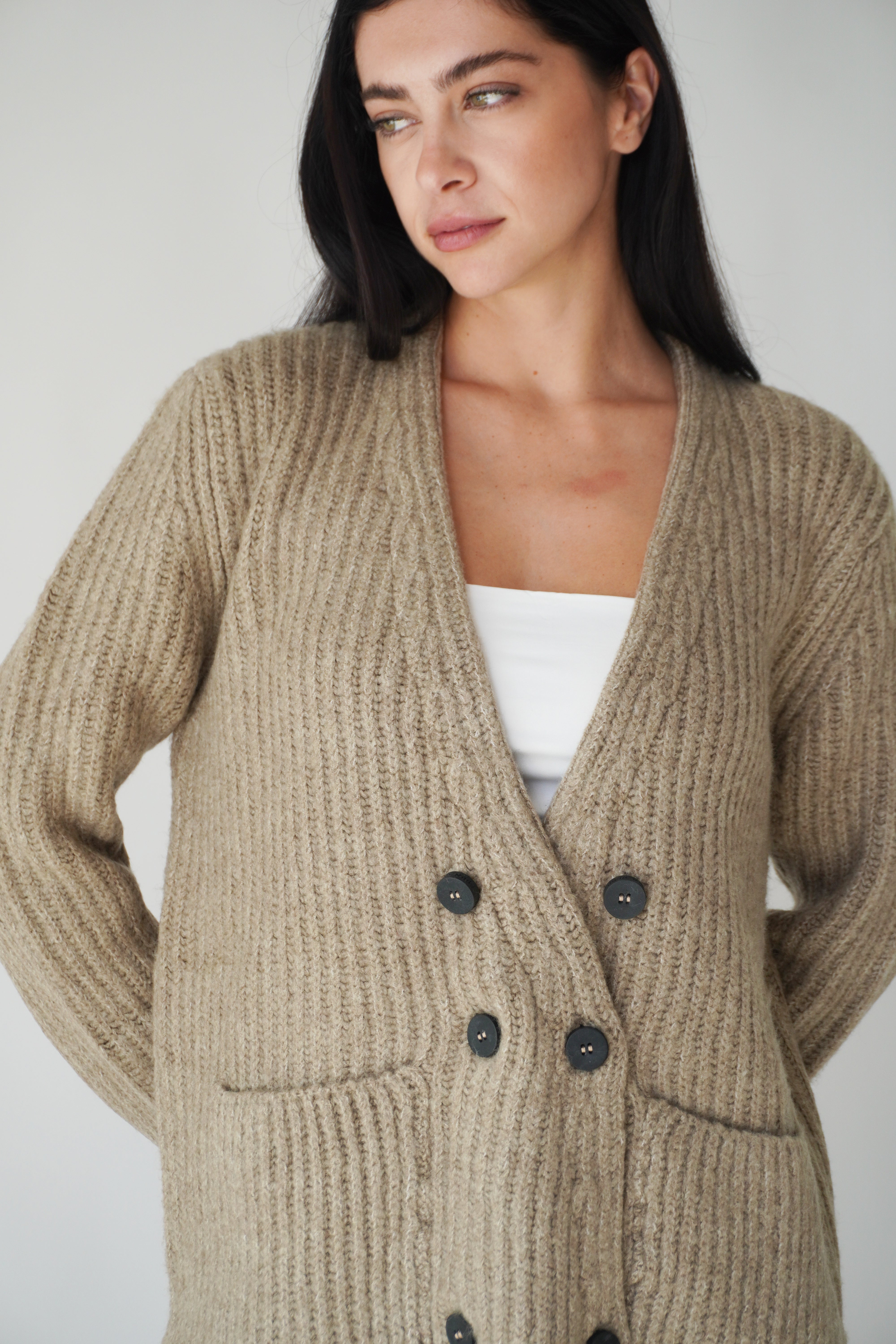 Oversized Rib Cardigan / Beige